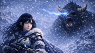 雪は多くを隠す。だが、消えない記録もある。片眼の巨獣と、一歩引いて狩る射手。それは、雪嶺に残された一つの記録。