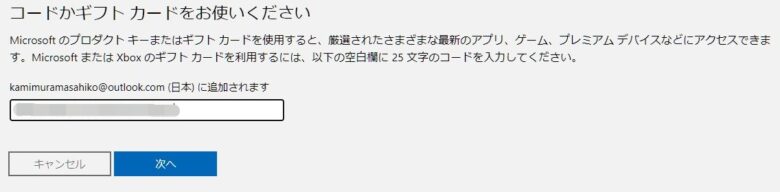 こちらには「XBOX.comでコードを使う」が表示されています。